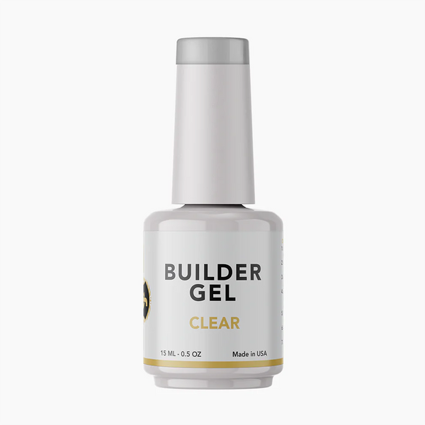 - Apply a thin layer of Builder Gel on the nail and on the clear nail tip. Use a mini-LED light to flash cure with slight pressure.